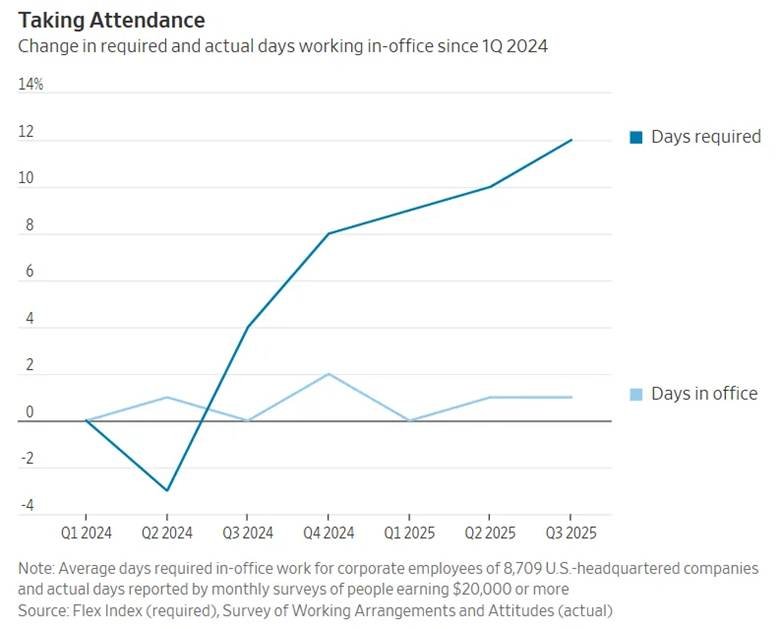 - A survey of companies’ work-location strategy states: 22% of companies have already returned to a fully in-office model by a recent date; an additional 5% plan to adopt full in-office by end of 2025.