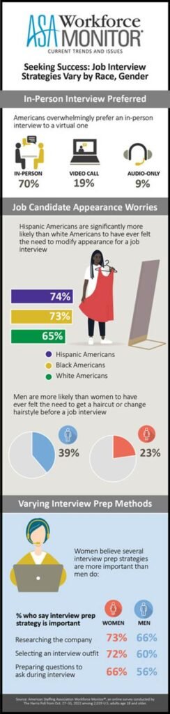 - A survey by Express Employment Professionals / The Harris Poll found that 51% of U.S. hiring managers prefer in-person interviews rather than virtual ones.